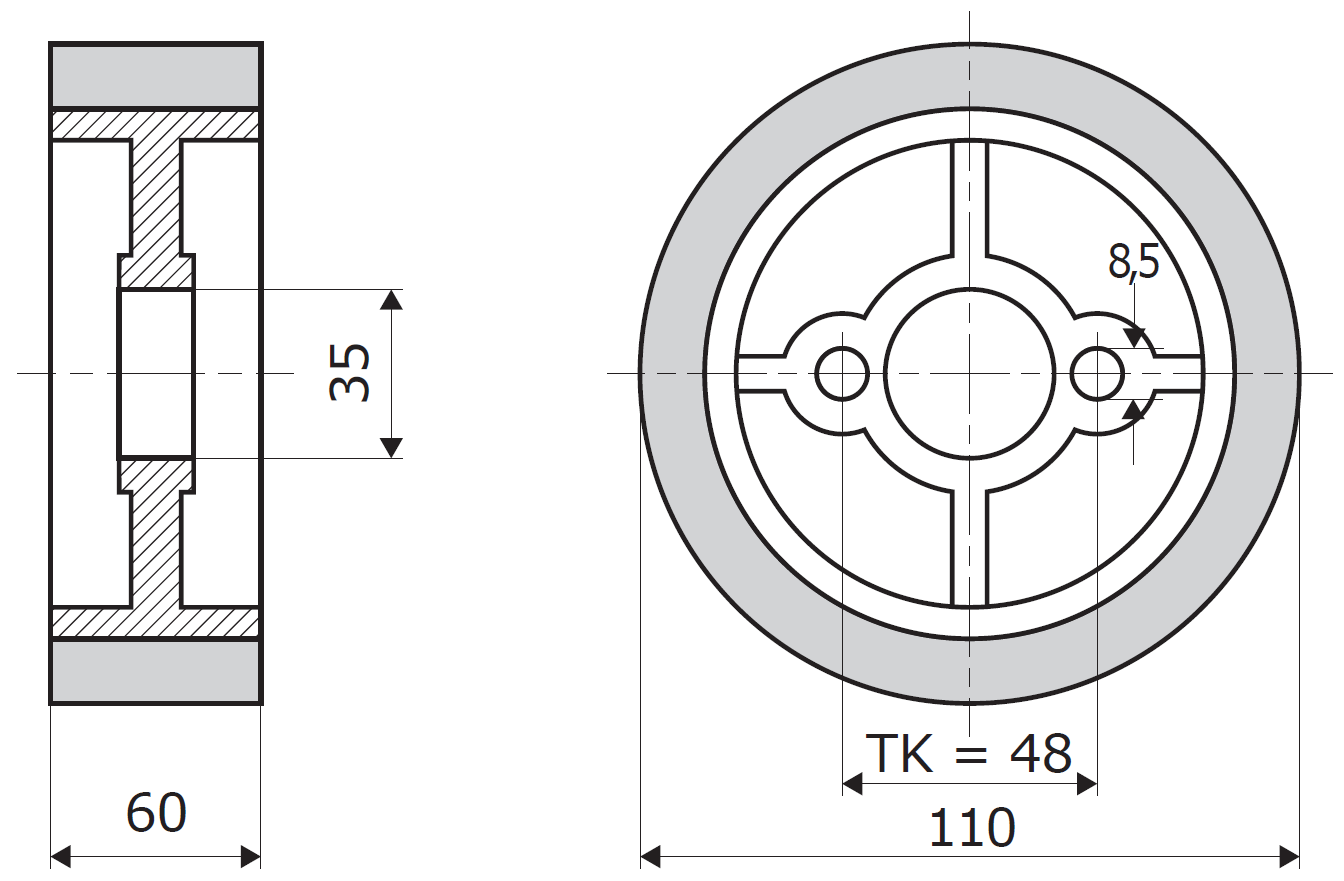 Die Rollen sind zum Einbau in verschiedene Vorschubapparate geeignet. Nach Ihrem Wunsch gummieren wir die Rollen auch mit einer anderen Gummimischung (schicken Sie uns eine Anfrage).